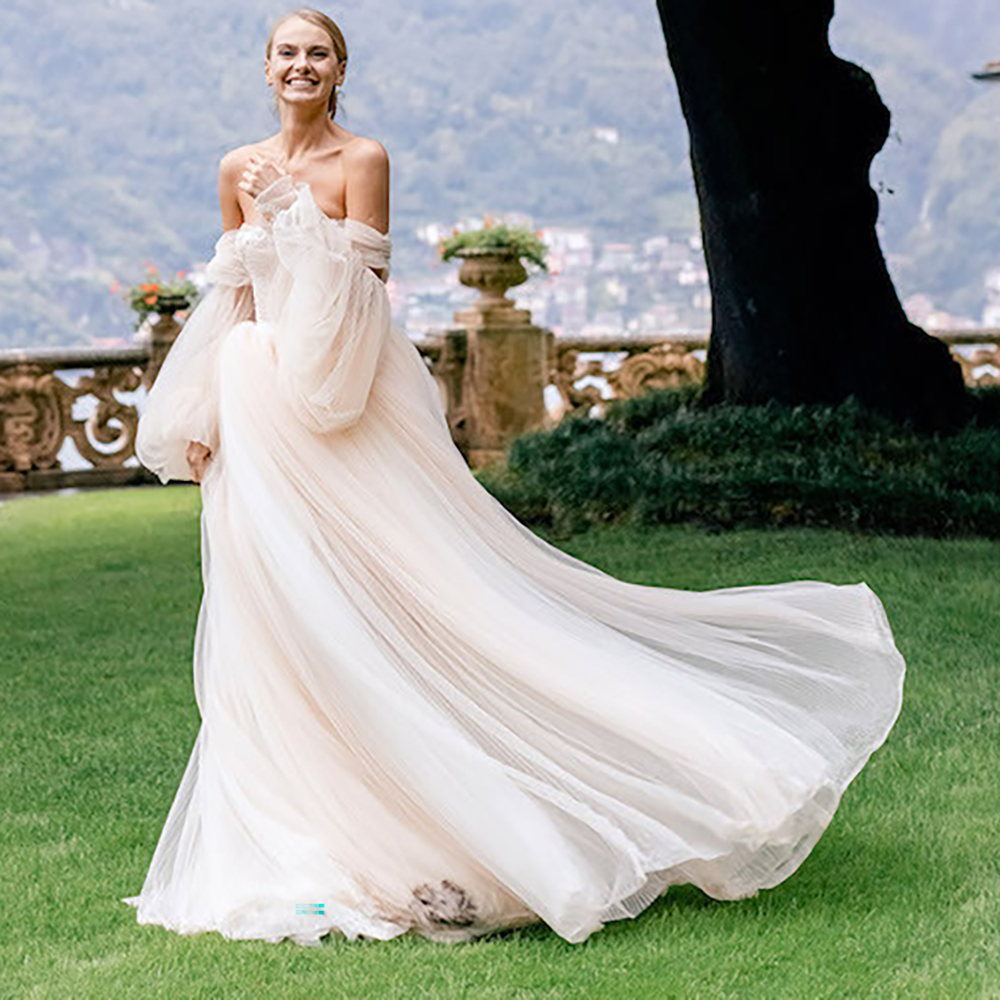 Long Bishop Sleeve Pleated Tulle Bridal Gown Sweetheart Ruched Lace Zipper Custom Made Princess Puffy Off Shoulder Wedding Dress