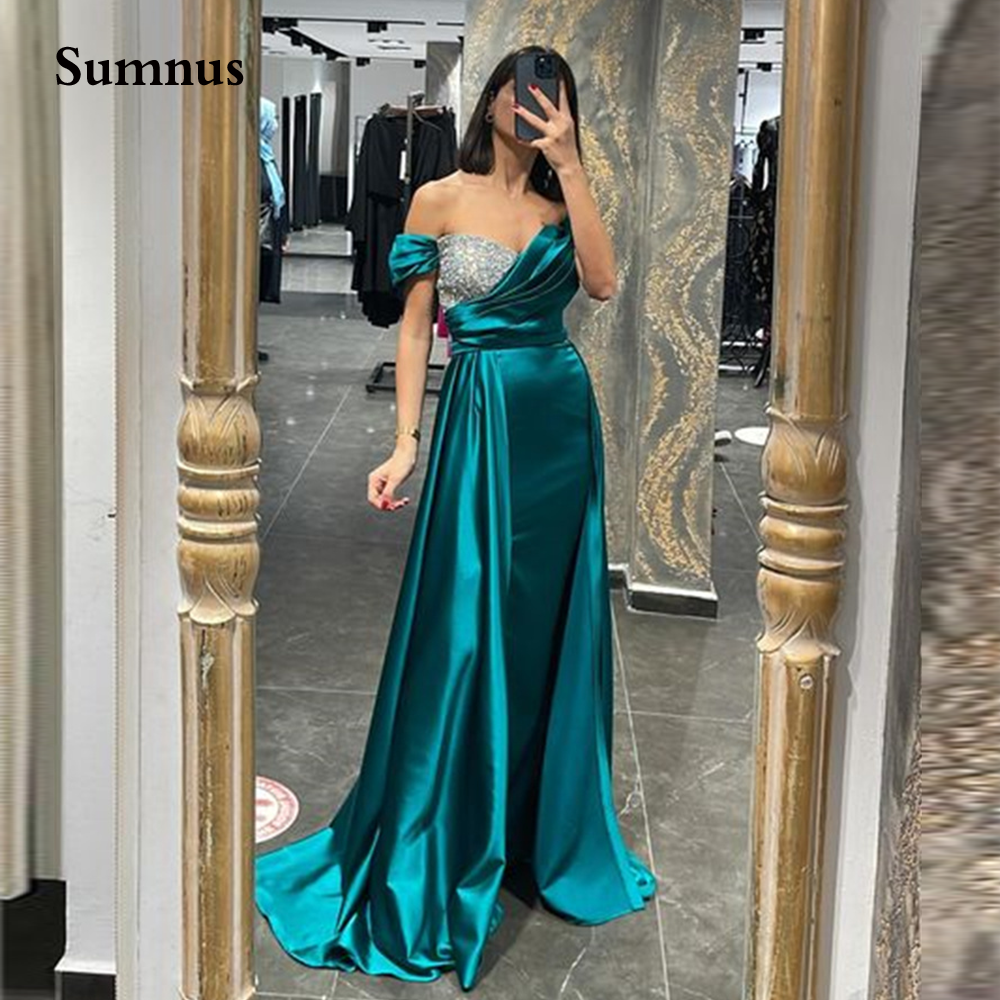 Green Vintage Mermaid Formal Evening Dress Off The Shoulder Beading Long Party Night Gowns