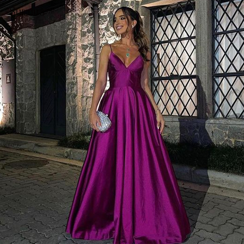 Dark Purple Evening Dresses Spaghetti Straps Stain Party Dresses