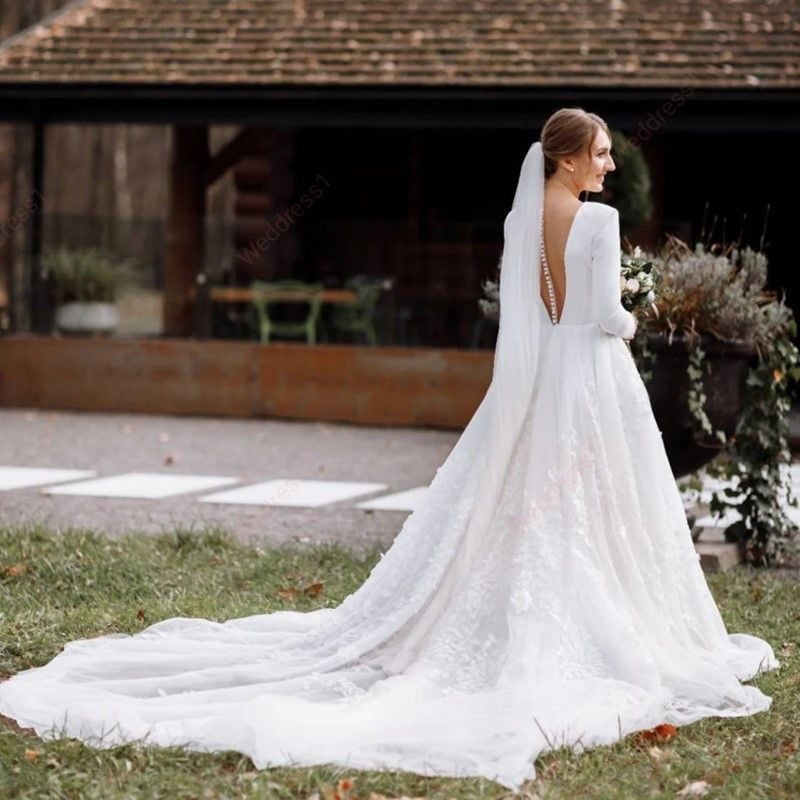 A Line Wedding Dresses Open Back Vintage Beach Bridal Gowns