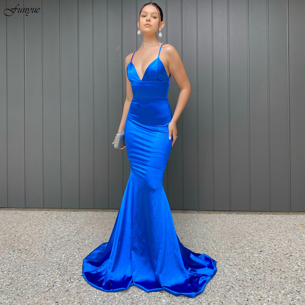 Royal Blue Simple Satin Formal Party Evening Gowns