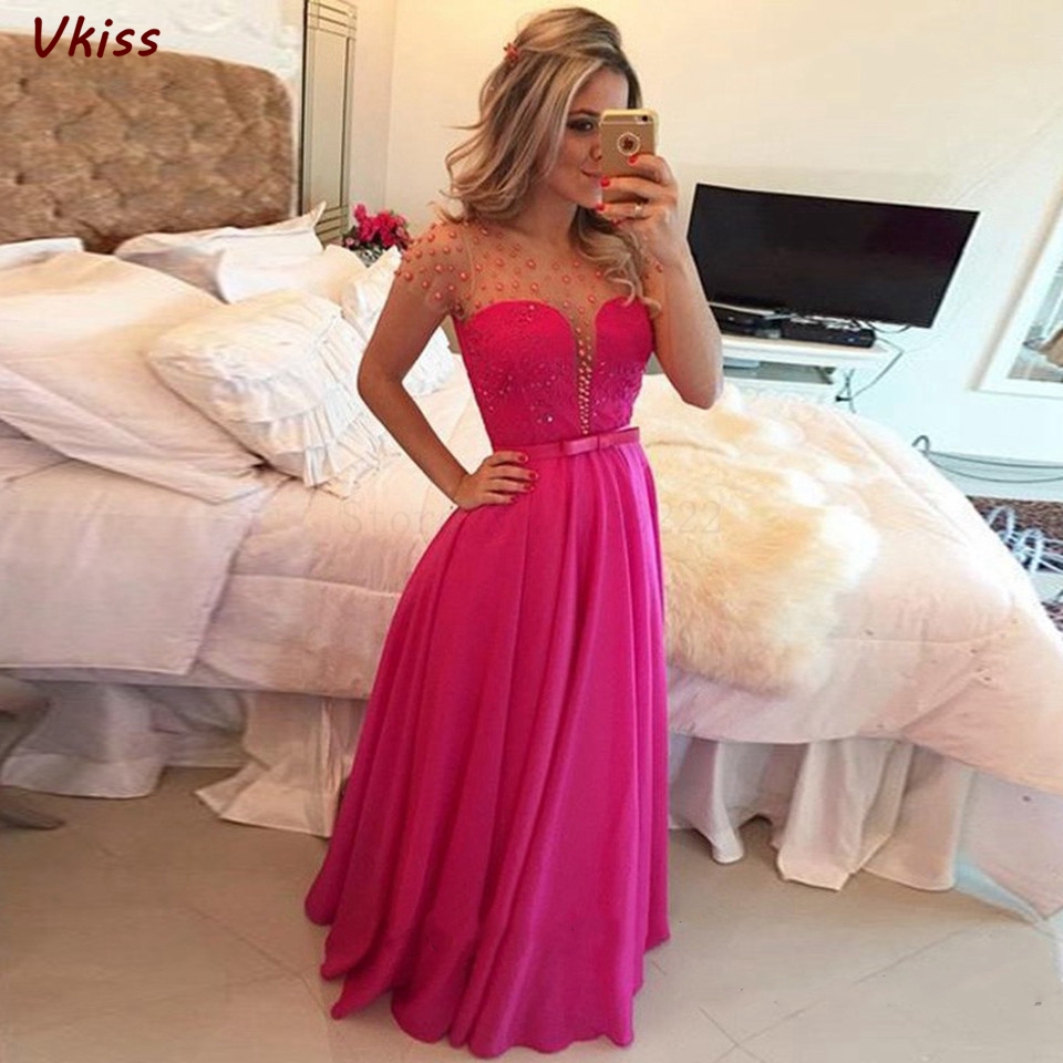 Elegant Party Night Beading Pearls Long Vestidos Gala Chiffon Summer Robe Evening Dress